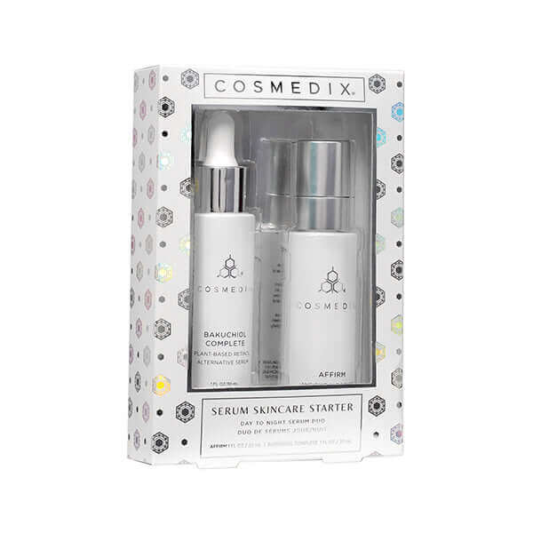 Serum Skincare Starter is a Day to Night Serum Duo that deeply hydrates and helps protect the skin from environmental stressors for a softer, smoother-looking complexion. Upgrade your skincare routine with this ultimate Serum Skincare Starter set featuring bestselling Affirm Antioxidant Firming Serum and Bakuchiol Complete Plant-Based Retinol Alternative Serum. This Day to Night Serum Duo deeply hydrates and helps protect the skin from environmental stressors for a healthier-looking complexion.