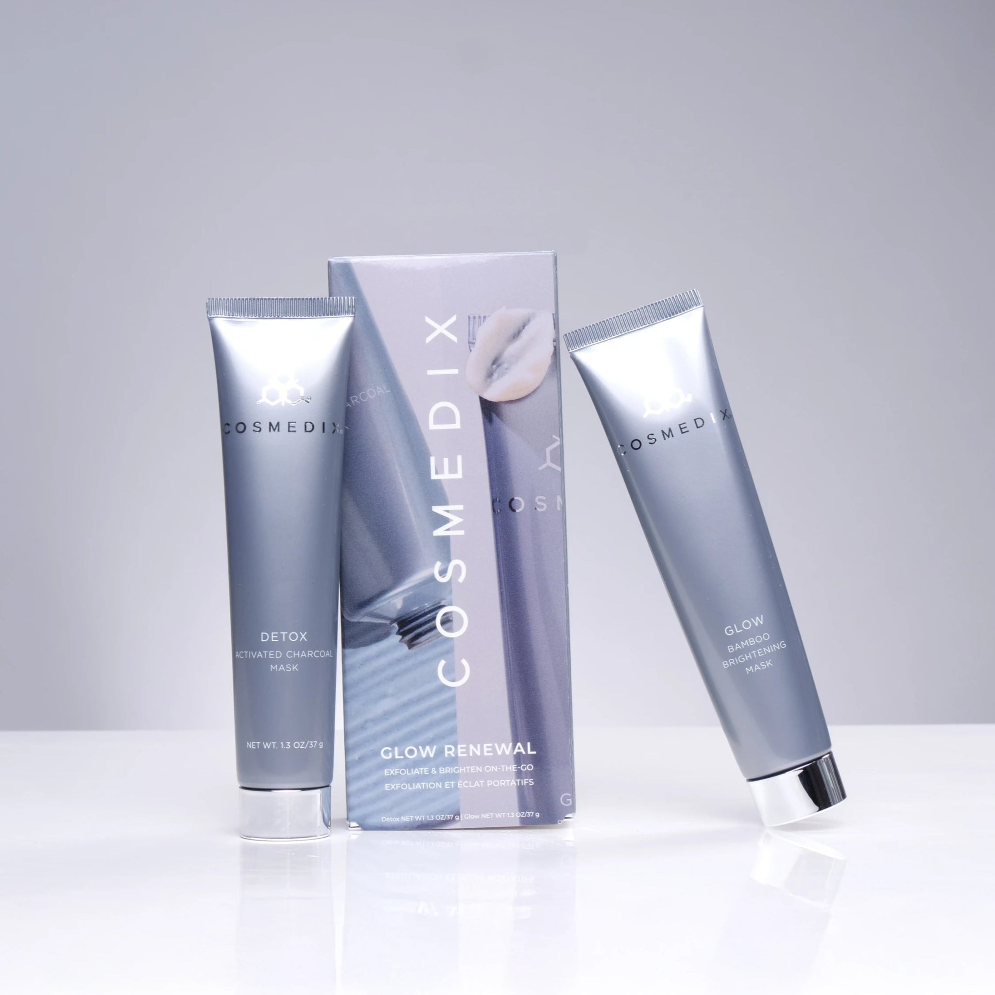 Give your skin a total refresh with this clarifying and brightening mask set. Glow Renewal combines two high-performance masks—Detox, a purifying charcoal treatment that draws out excess oil and impurities, and Glow, a bamboo and niacinamide-infused mask that exfoliates and boosts radiance. Use them individually or as a duo to help improve texture, refine pores, and promote a clearer, more luminous-looking complexion. Perfect for on-the-go renewal or a targeted skin reset.